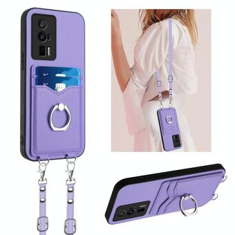 For Xiaomi Poco X5 Pro R20 Crossbody Rope Ring Card Holder Phone Case(Purple)