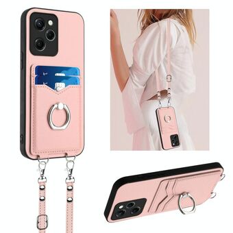 For Xiaomi Poco X5 Pro R20 Crossbody Rope Ring Card Holder Phone Case(Pink)