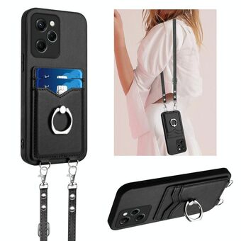 For Xiaomi Poco X5 Pro R20 Crossbody Rope Ring Card Holder Phone Case(Black)