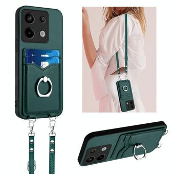 For Xiaomi Poco X6 R20 Crossbody Rope Ring Card Holder Phone Case(Green)