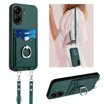 For Xiaomi Poco C65 R20 Crossbody Rope Ring Card Holder Phone Case(Green)