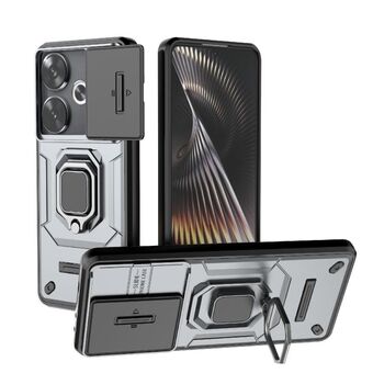 For Xiaomi Redmi Turbo 3 5G Sliding Camshield TPU + PC Shockproof Phone Case with Holder(Grey)