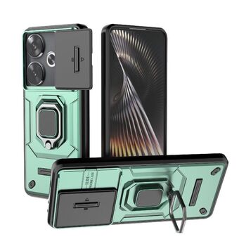 For Xiaomi Redmi Turbo 3 5G Sliding Camshield TPU + PC Shockproof Phone Case with Holder(Green)