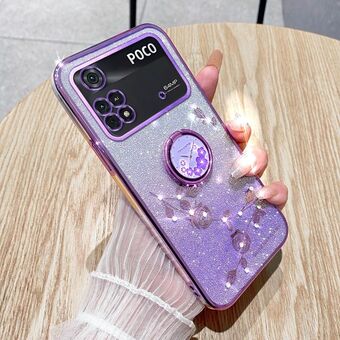 For Xiaomi Poco M4 Pro 4G Gradient Glitter Immortal Flower Ring All-inclusive Phone Case(Purple)