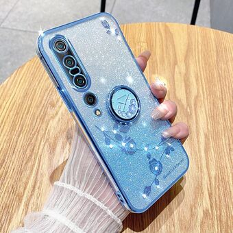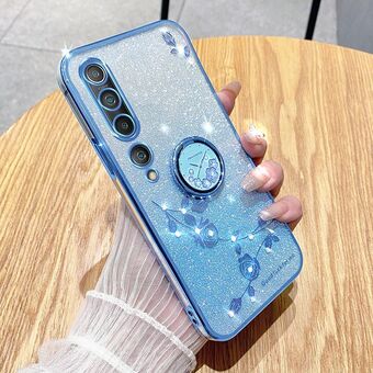 For Xiaomi Mi 10 Gradient Glitter Immortal Flower Ring All-inclusive Phone Case(Blue)
