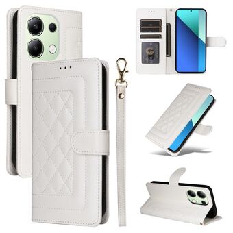 For Xiaomi Redmi Note 13 4G Diamond Lattice Leather Flip Phone Case(White)