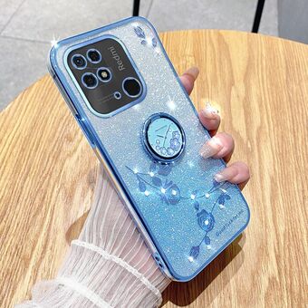 For Xiaomi Redmi 10C Gradient Glitter Immortal Flower Ring All-inclusive Phone Case(Blue)
