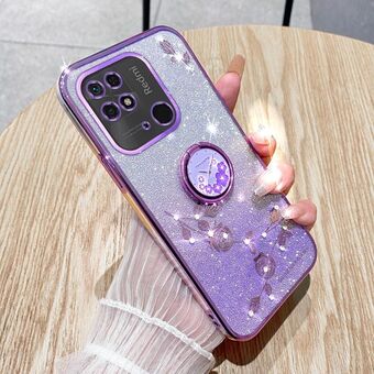 For Xiaomi Redmi 10C Gradient Glitter Immortal Flower Ring All-inclusive Phone Case(Purple)