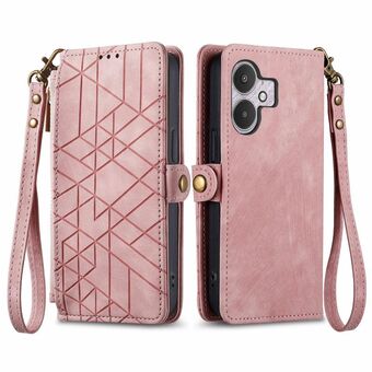 For Xiaomi Redmi 13C 5G Geometric Zipper Wallet Side Buckle Leather Phone Case(Pink)