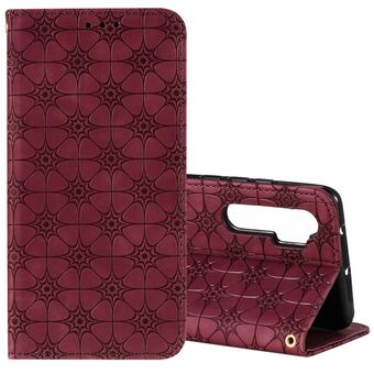 For Xiaomi Mi Note 10 Lite Lucky Flowers Embossing Pattern Magnetic Horizontal Flip Leather Case with Holder & Card Slots(Wine Red)