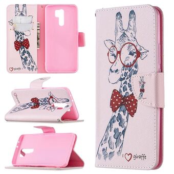 For Xiaomi Redmi 9 Colored Drawing Pattern Horizontal Flip Leather Case with Holder & Card Slots & Wallet(Giraffe)