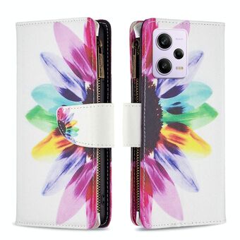 For Xiaomi Redmi Note 12 Pro Global Colored Drawing Pattern Zipper Leather Phone Case(Sun Flower)