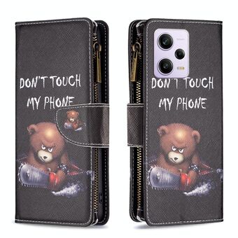 For Xiaomi Redmi Note 12 Pro Global Colored Drawing Pattern Zipper Leather Phone Case(Bear)