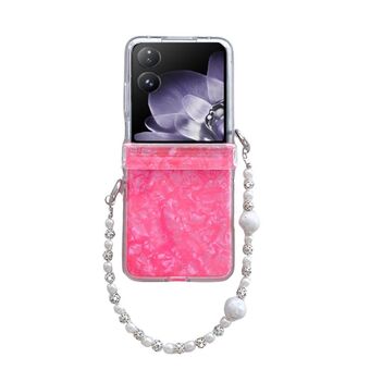 Για Xiaomi Mix Flip τρία μέρη Pearlescent Shell Υφή τηλέφωνο υπόθεση με βραχιόλι (ροζ)