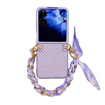 Θήκη κινητού Xiaomi Mix Flip με Λαμπερό Διαμαντένιο Ρομβικό Σχέδιο από PC με Βραχιόλι Μεταξωτού Μαντηλιού (Μωβ)
