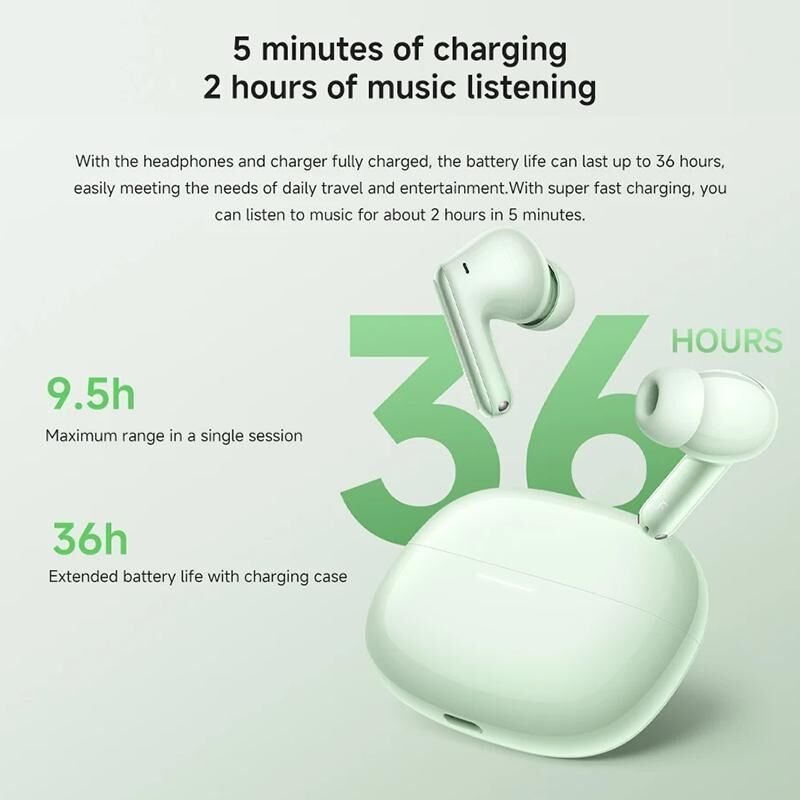 6. Single earphone music battery life: about 9.5 hours (noise reduction off)