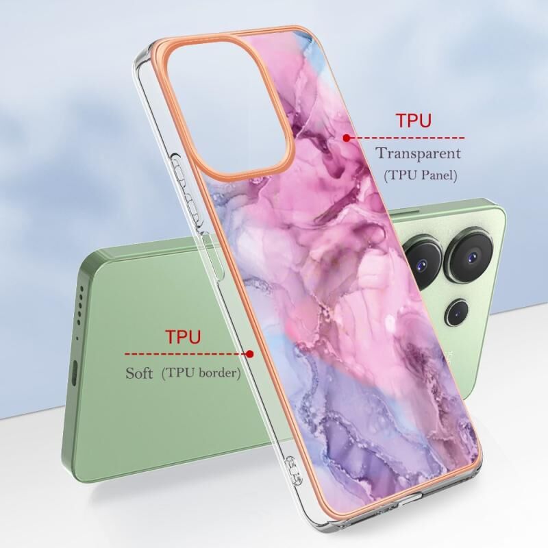 Θήκη κινητού Xiaomi Redmi Note 13 4G, Επιμετάλλωση, Μάρμαρο, Διπλής όψης, IMD TPU (Ροζ 013)
