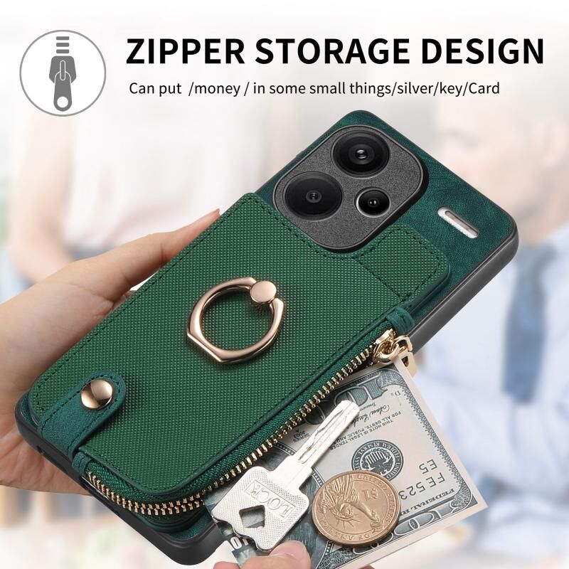 Xiaomi Redmi Note 13 Pro + Cross Δερμάτινο δαχτυλίδι κάθετη φερμουάρ πορτοφόλι πίσω υπόθεση τηλεφώνου (πράσινο)