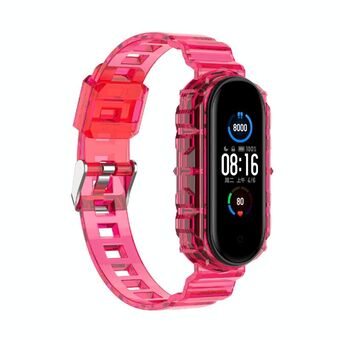 For Xiaomi Mi Band 5/6/7 Universal TPU Integrated Watch Band(Transparent Rose Red)