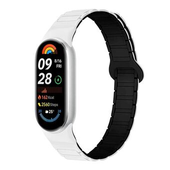 For Xiaomi Smart Band 10 / 9 / 8 Tri-beads Magnetic Silicone Watch Band(White Black)