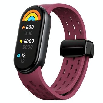 For Xiaomi Smart Band 9 Magnetic Folding Buckle Silicone Watch Band(Wine Red)