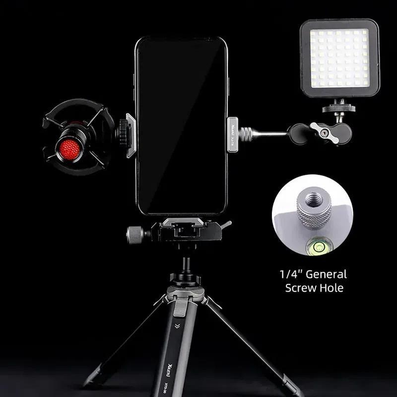 5. Dual cold shoe + Arca-compatible base: Simultaneously supports lighting/sound accessories, compatible with 1/4-inch screw tripod heads