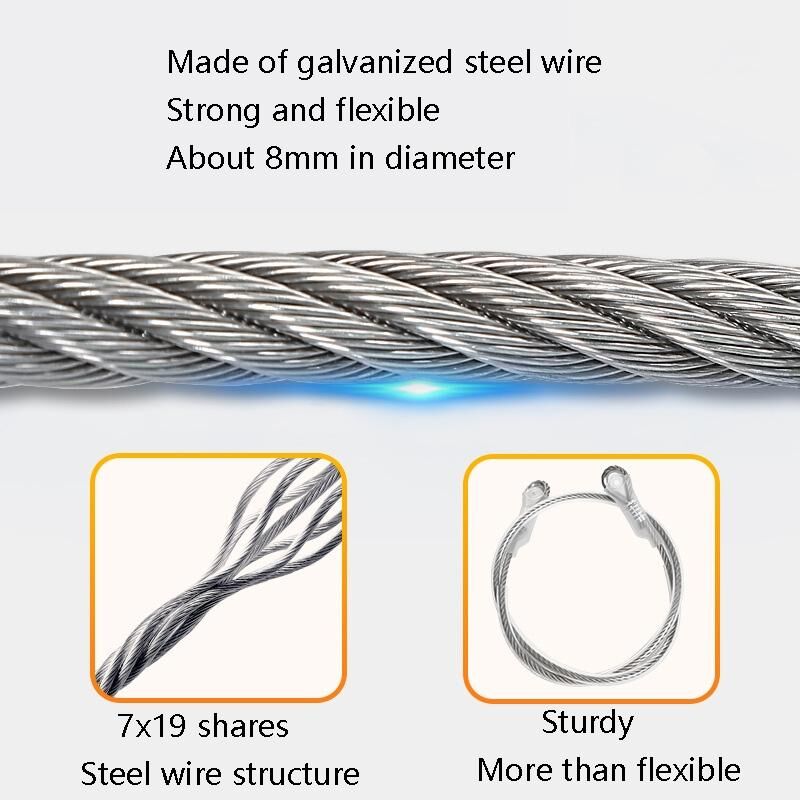 1. Κατασκευασμένο από γαλβανισμένο ατσάλινο συρματόσχοινο 8mm, ισχυρό και εύκαμπτο, ανθεκτικό στην τριβή και την κοπή