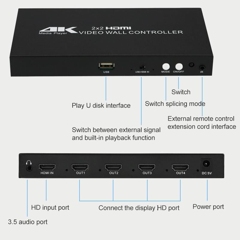4. Supports multiple splicing modes: 1x1, 1x2, 1x3, 1x4, 2x2, 2x1, 3x1, 4x1 (row x column) to meet your various screen splicing needs.