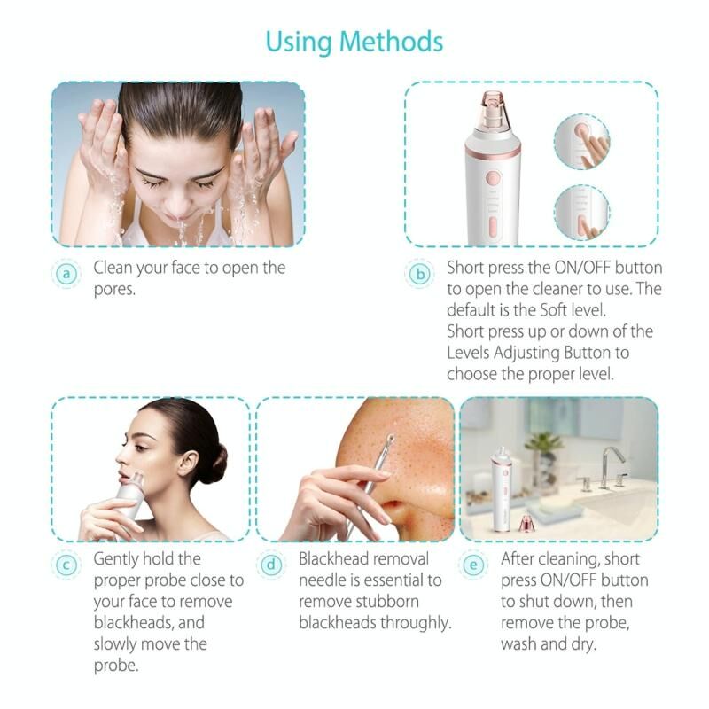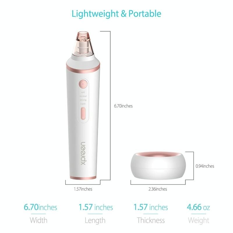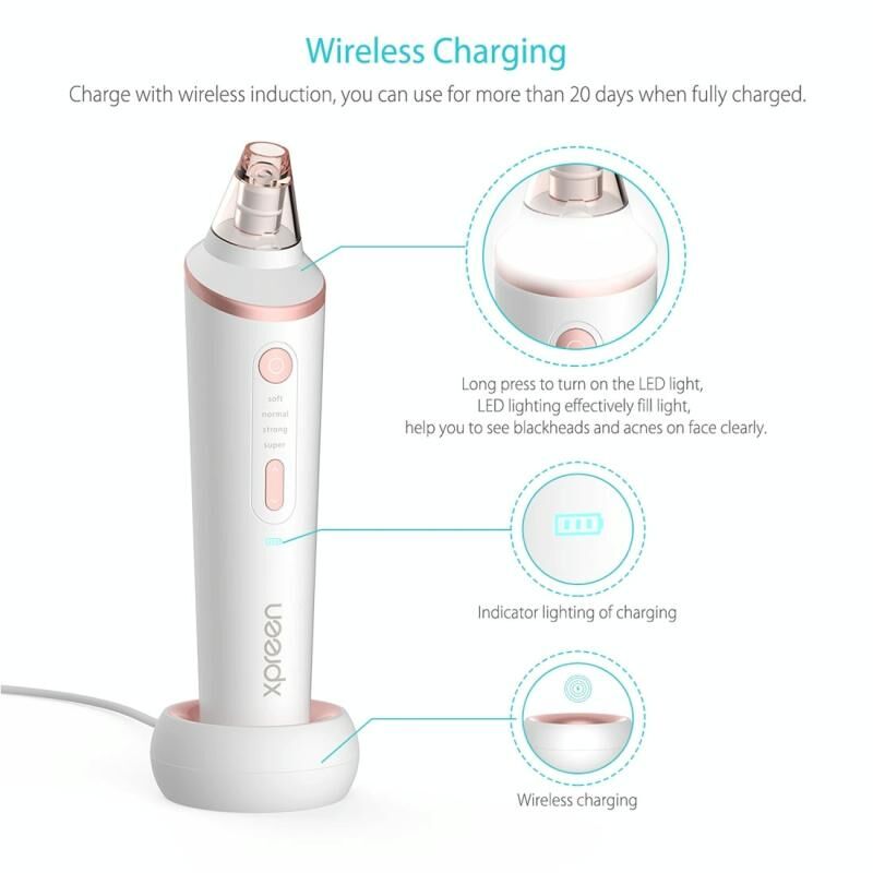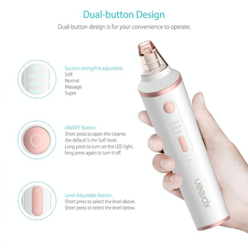 4. Ρυθμιζόμενος καθαριστής πόρων: εξοπλισμένος με τέσσερις βαθμίδες αναρρόφησης για να ρυθμίσετε απαλή, κανονική, μασάζ, υπερβολική, έτσι ο καθαριστής πόρων είναι κατάλληλος για πολλούς τύπους δέρματος.