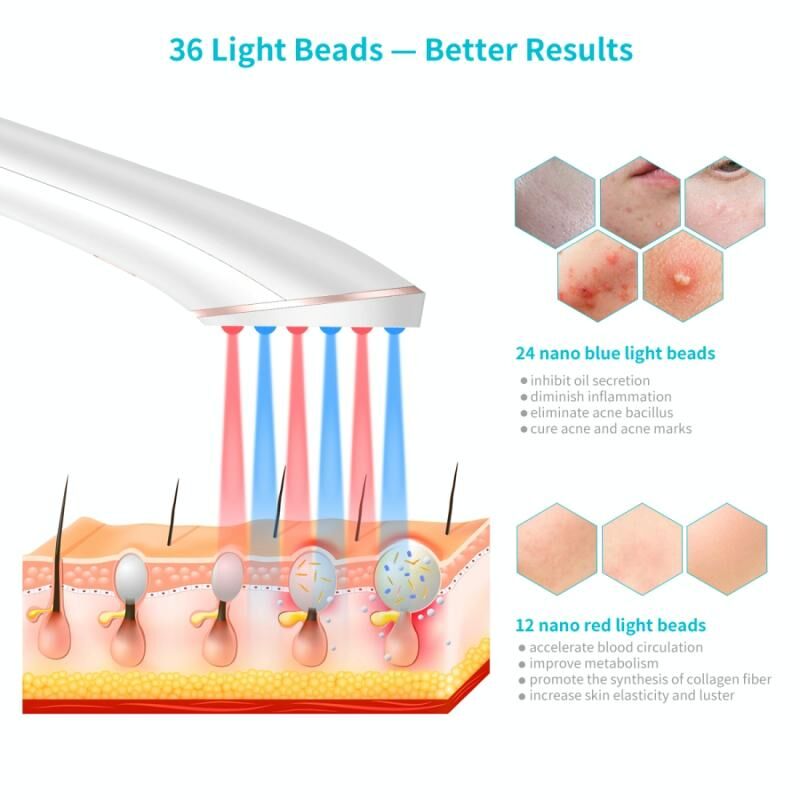 2. Η προηγμένη τεχνολογία φωτοθεραπείας χρησιμοποιήθηκε για την εξάλειψη των βακίλων της ακμής, την εξισορρόπηση της έκκρισης ελαίου, την ενίσχυση της ζωτικότητας των κυττάρων και την αύξηση της ελαστικότητας του δέρματος. Δεν προκαλεί ερεθισμό για τους περισσότερους τύπους δέρματος.