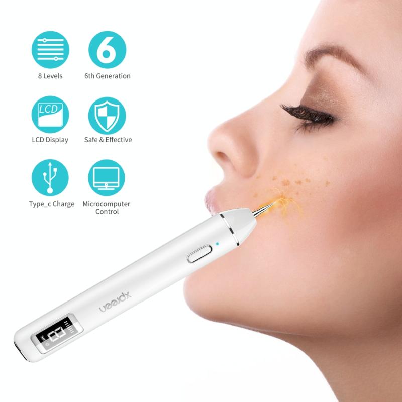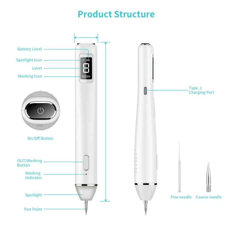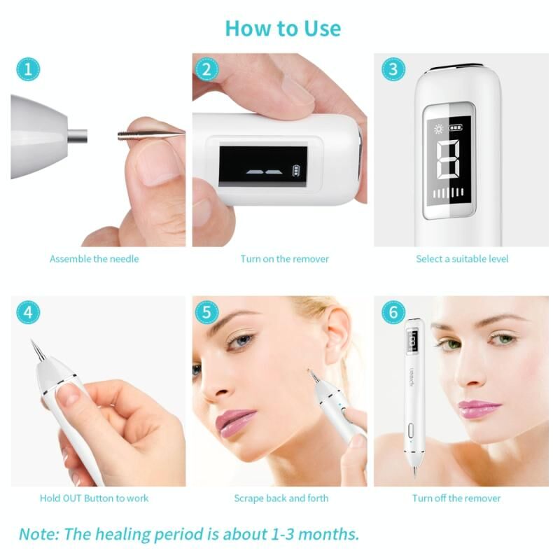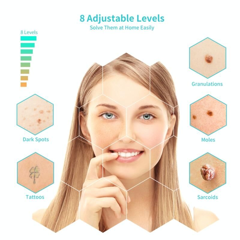2.Easy & Effective to Use: the mole remover has 8 levels. Just press the power button to choose levels. Simple operation brings effective results. LED spotlight also helps aim at ark spots accurately.