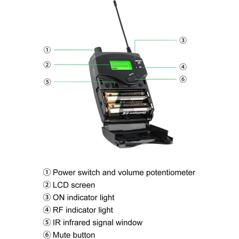 3. Περισσότερες λειτουργίες στην παρακολούθηση Iem: Ο ασύρματος πομπός και ο δέκτης μπορούν να συνδεθούν αυτόματα. Σύνδεση USB dish, λειτουργία σύνδεσης Bluetooth, λειτουργία σίγασης, υποστήριξη αναπαραγωγής συνοδευτικής μουσικής. Το σύστημα Iem λειτουργεί άψογα σε διάφορες εκδηλώσεις παρακολούθησης ήχου, σκηνικές παραστάσεις, ηχογραφήσεις στούντιο, εκθέσεις, διαλέξεις, διδασκαλίες, ομιλίες κ.λπ.