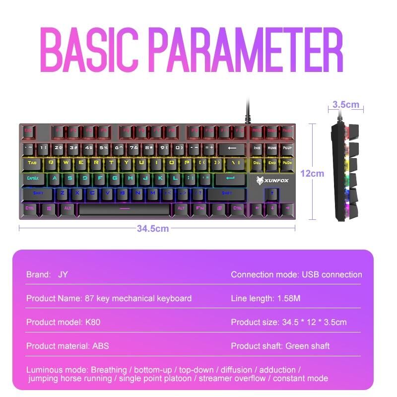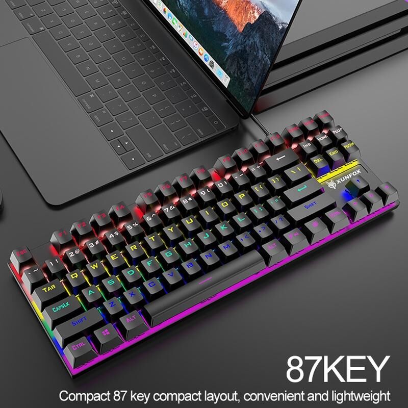 Πληκτρολόγιο μηχανικό φωτιζόμενο XUNFOX K80 87 πλήκτρων, ενσύρματο για παιχνίδια, μήκος καλωδίου: 1,5μ (Λευκό Κίτρινο) (XUNFOX)