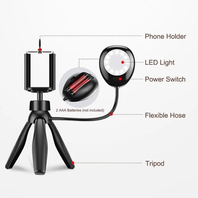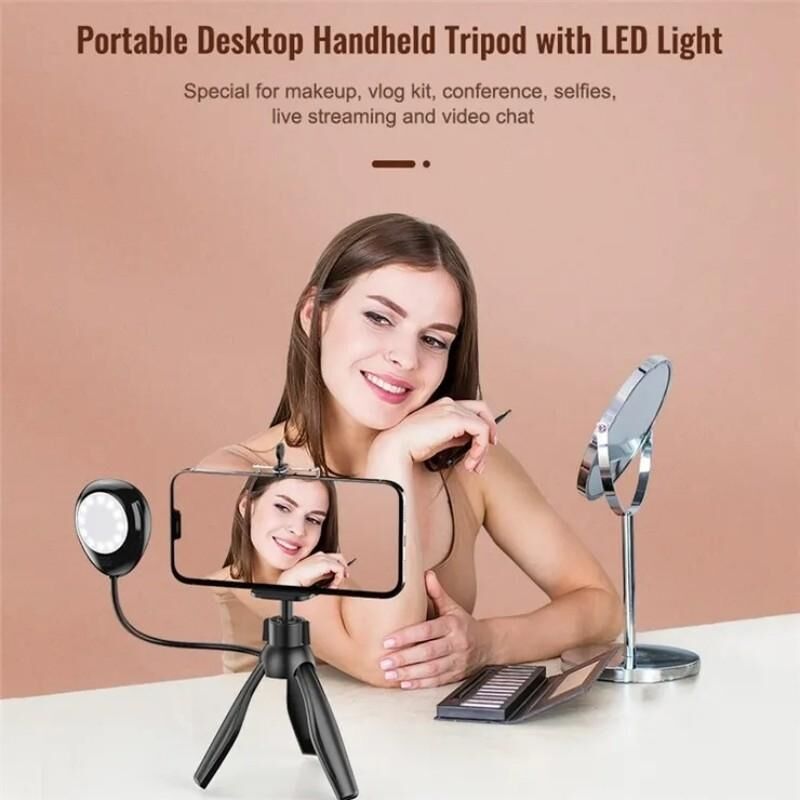2. Wide range of uses: a stable tripod phone holder, you can put this selfie fill light on your desktop, conference table, and any flat place