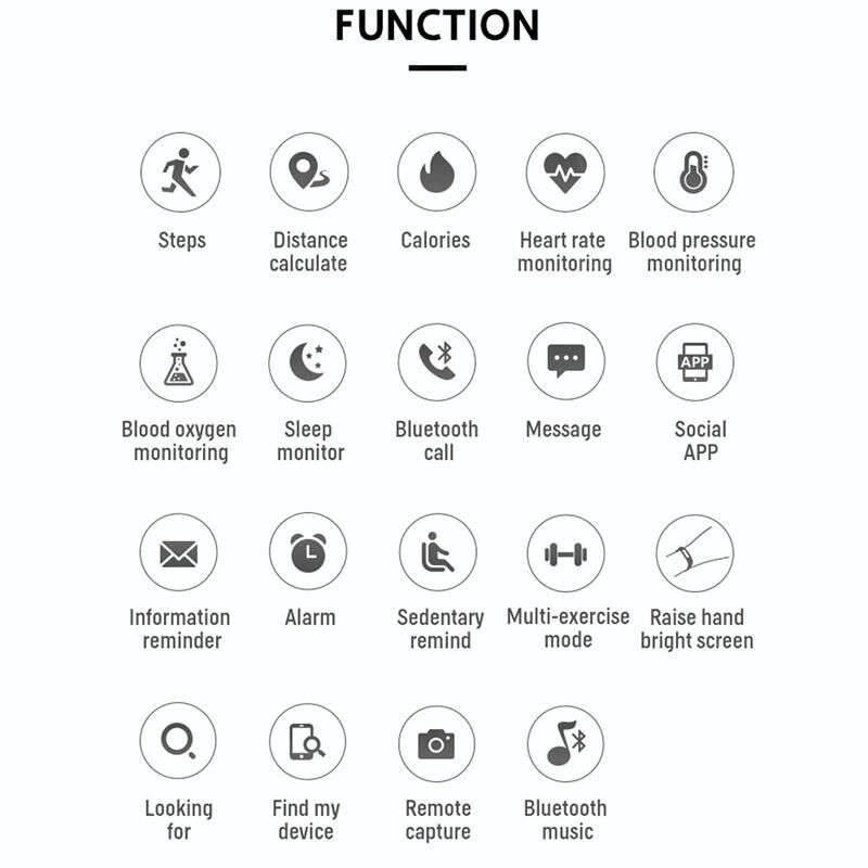 6. Call reminder,SMS alerts,alarm clock reminder,sedentary reminder,turn the wrist and shine the screen