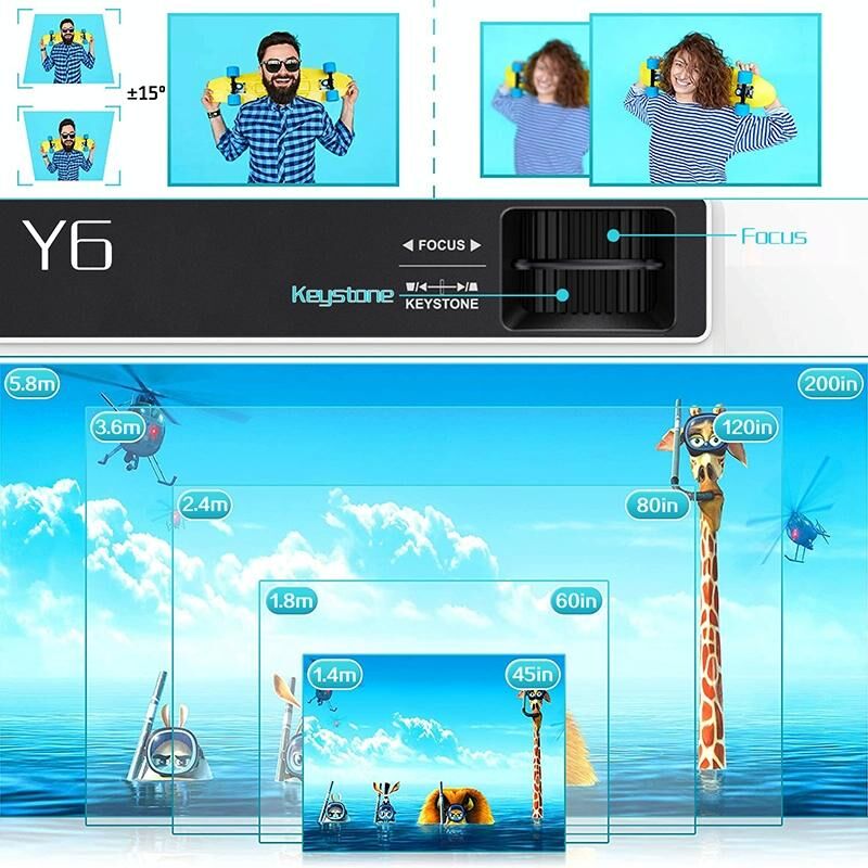 9. Projection size: 45 inches@1.35 meters, 60 inches@1.8 meters, 80 inches@2.4 meters