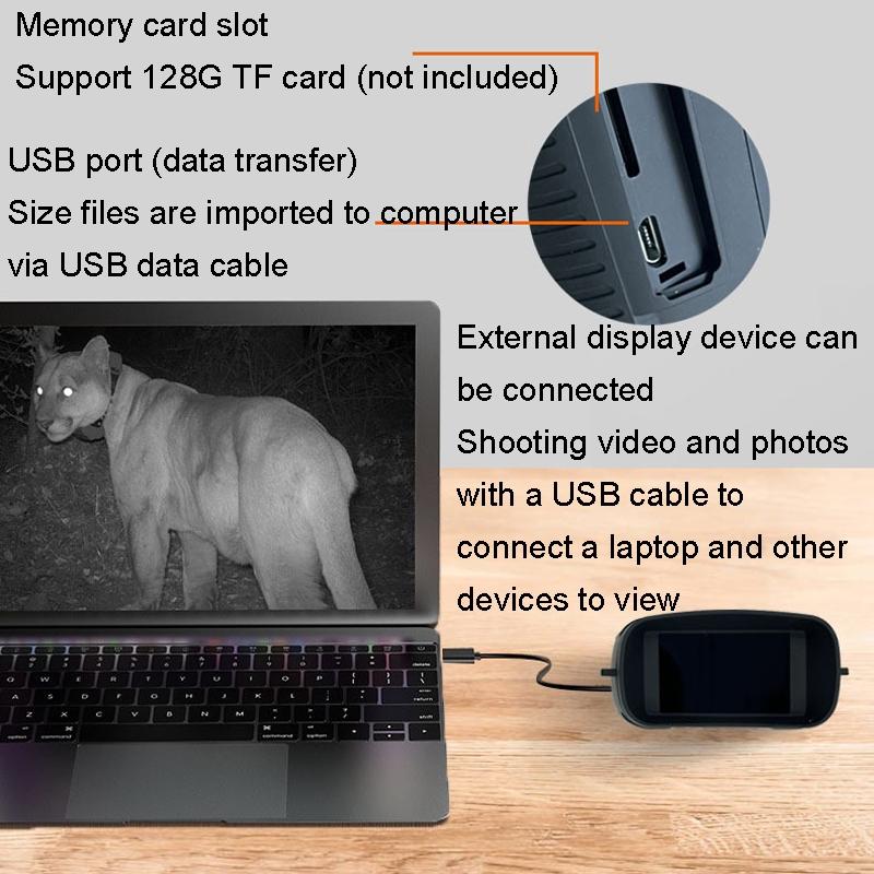1. Can be connected to an external display device, the video and photos taken can be viewed by connecting to a laptop and other devices via USB data cable