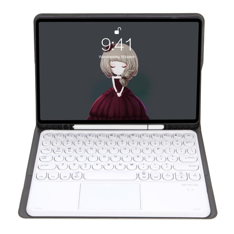 YA07B-A Detachable Lambskin Texture Round Keycap Bluetooth Keyboard Leather Tablet Case with Touch Control & Pen Slot & Stand For iPad 9.7 inch (2018) & (2017) / Pro 9.7 inch / Air 2 / Air(Rose Gold)