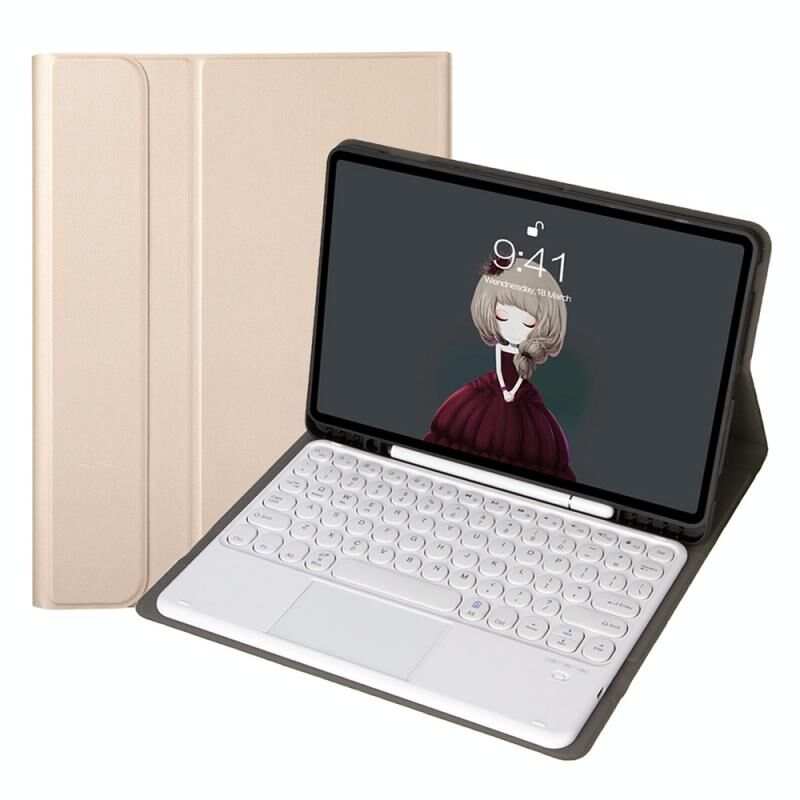 YA098B-A Detachable Lambskin Texture Round Keycap Bluetooth Keyboard Leather Tablet Case with Touch Control & Pen Slot & Stand For iPad Air 5 / 4 10.9 inch 2020 / Pro 11 inch 2020 / 2018(Gold)