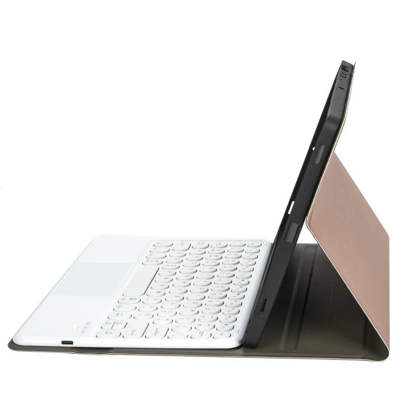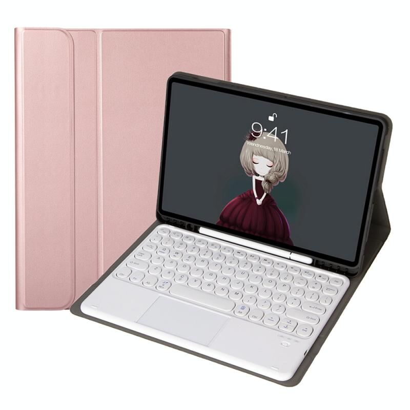 YA098B-A Detachable Lambskin Texture Round Keycap Bluetooth Keyboard Leather Tablet Case with Touch Control & Pen Slot & Stand For iPad Air 5 / 4 10.9 inch 2020 / Pro 11 inch 2020 / 2018(Rose Gold)