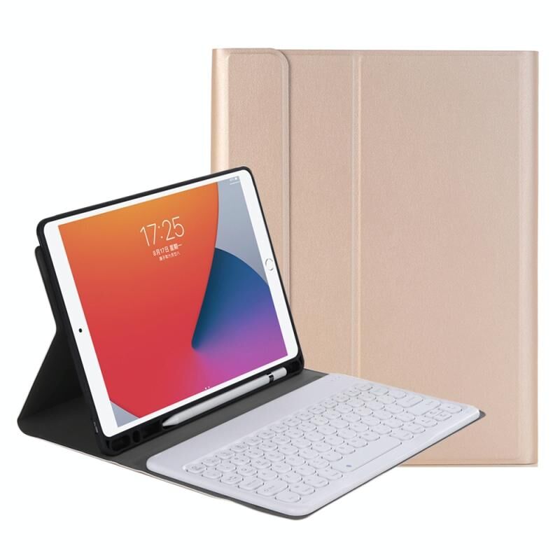 YA098B Detachable Lambskin Texture Round Keycap Bluetooth Keyboard Leather Tablet Case with Pen Slot & Stand For iPad Air 5 / 4 10.9 inch 2020 / Pro 11 inch 2020 / 2018(Gold)