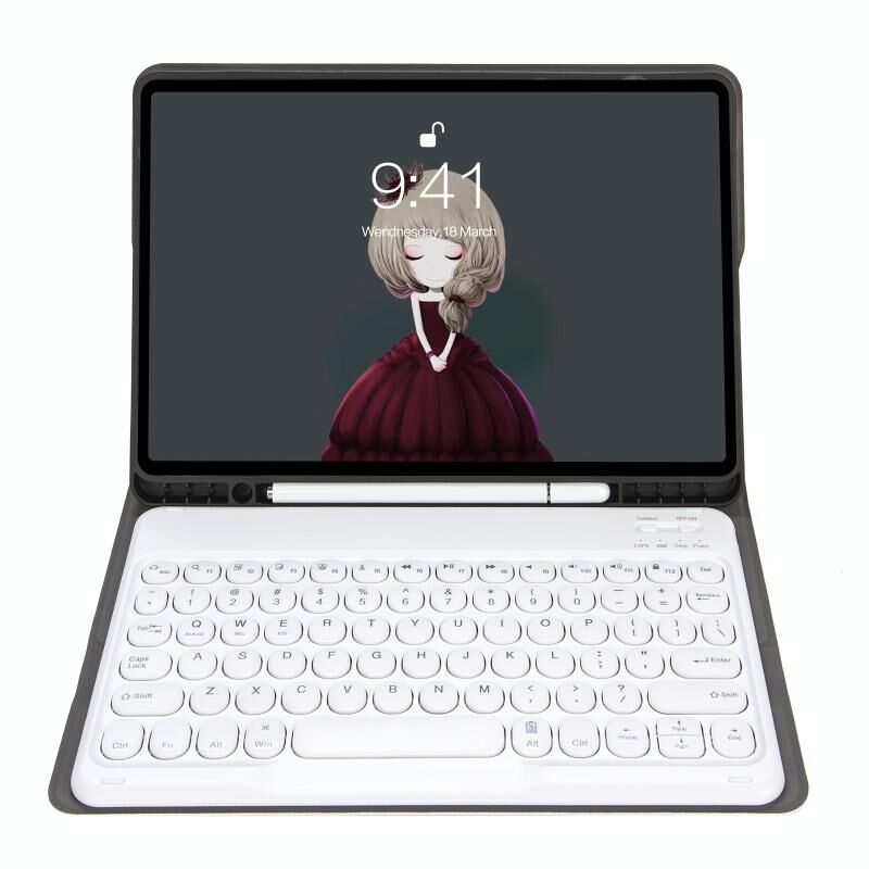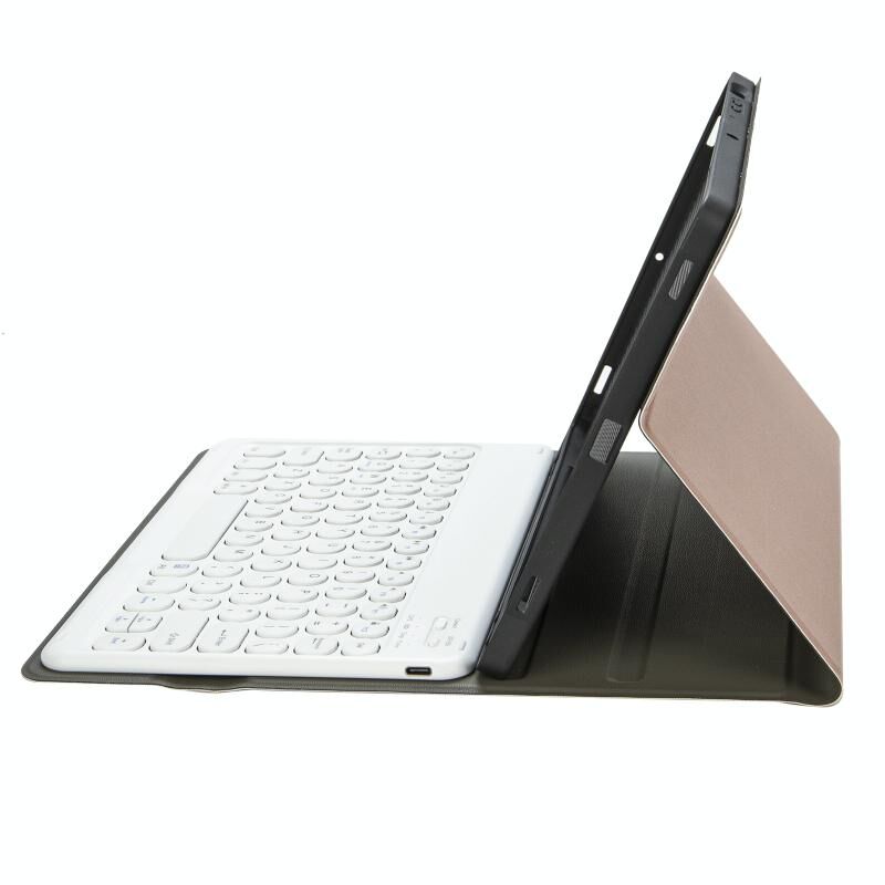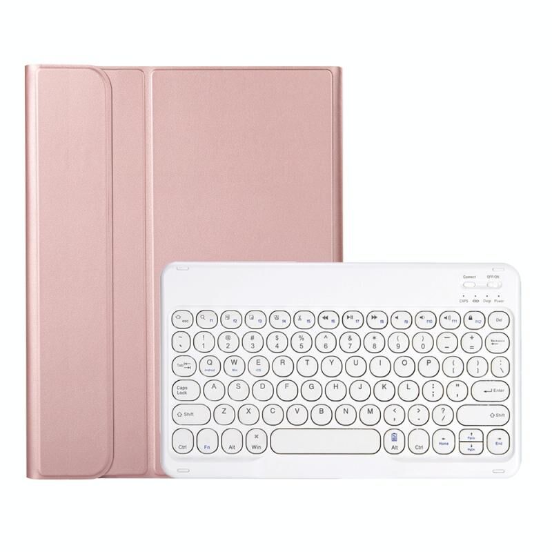 YA102B Detachable Lambskin Texture Round Keycap Bluetooth Keyboard Leather Tablet Case with Pen Slot & Stand For iPad 10.2 (2020) & (2019) / Air 3 10.5 inch / Pro 10.5 inch(Rose Gold)