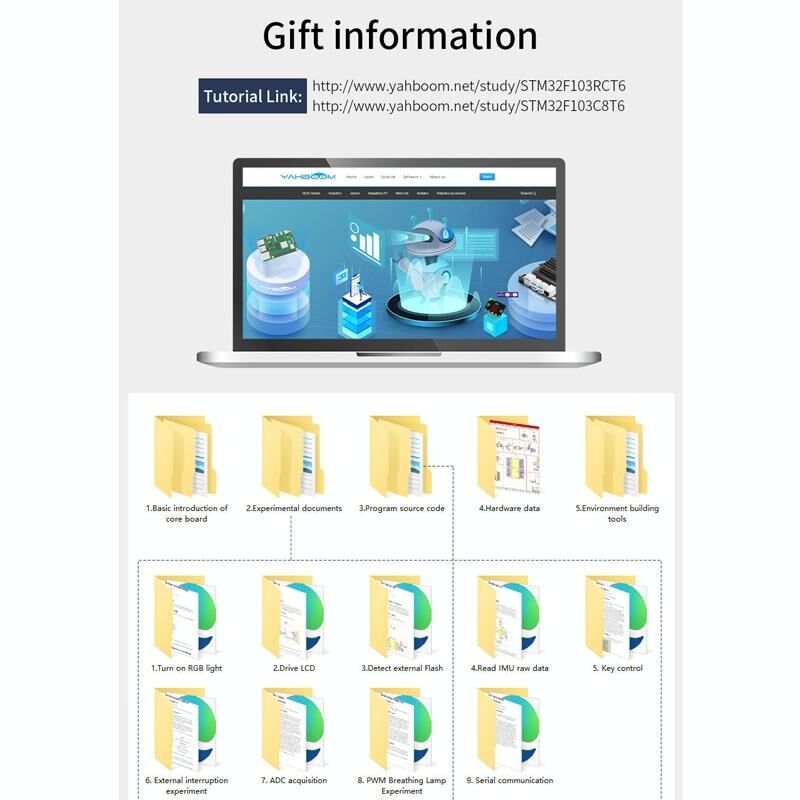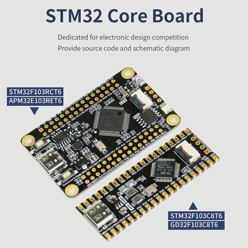 4. STM32F103RCT6: Contains all the pins of STM32F103C8T6 and some other peripheral pins, which can directly use the STM32 large-capacity standard library