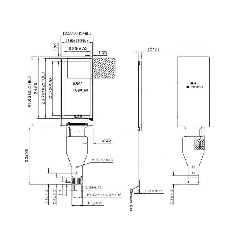 8. Panel size: 13.5(H)x27.95(V)x1.5(D)mm