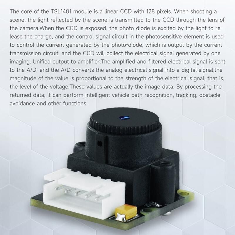 11. Using 128-pixel linear array CCD, working voltage 3.3-5V, detection distance 5-40 cm