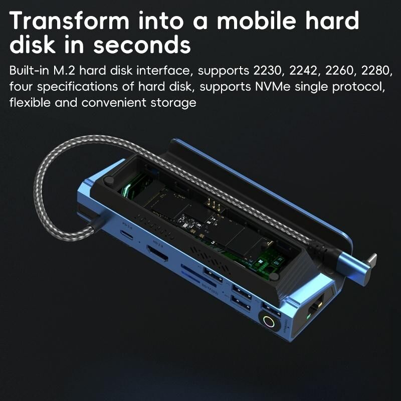 8. Ενσωματωμένη διεπαφή σκληρού δίσκου M.2, μετατρέπεται άμεσα σε φορητό κουτί σκληρού δίσκου, υποστηρίζει έως και 5GB