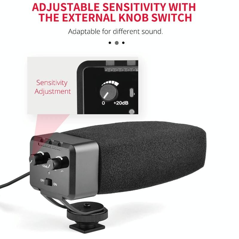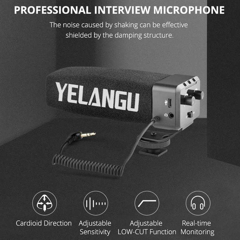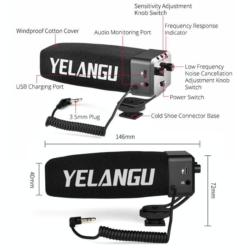 YELANG MIC09 Shotgun Gain Condenser Broadcast Microphone with Windshield for Canon / Nikon / Sony DSLR Cameras, Smartphones(Black) (YICHUANG)