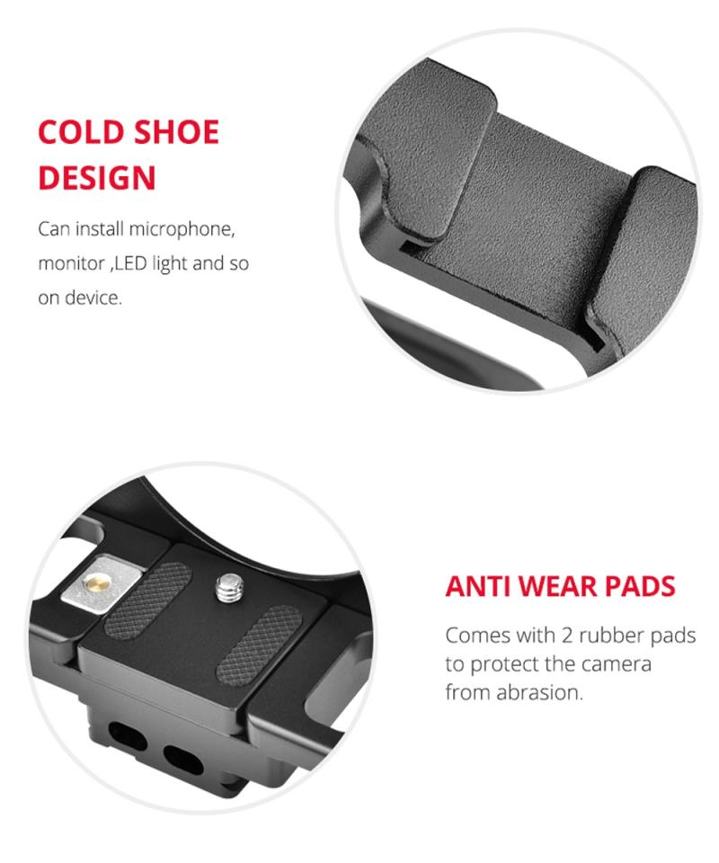 5. There have 1/4 and 3/8 threaded holes on the cage for easy fitting accessories.