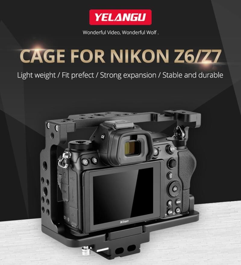 7. The camera cage designed for Nikon Z6/Z7. Have 1/4 and 3/8 screw holes, cold shoe and Arri stop holes interface.