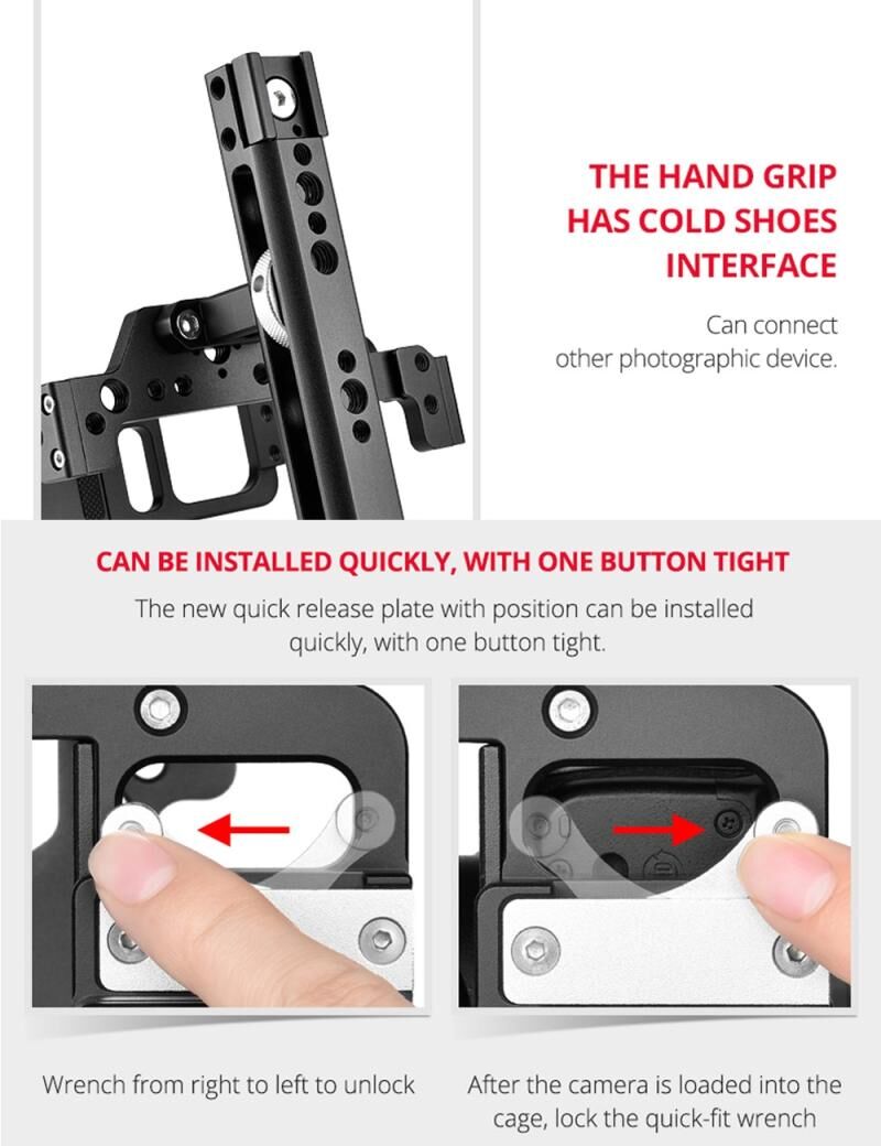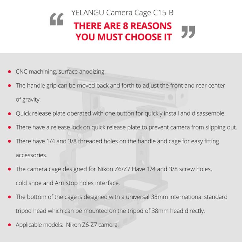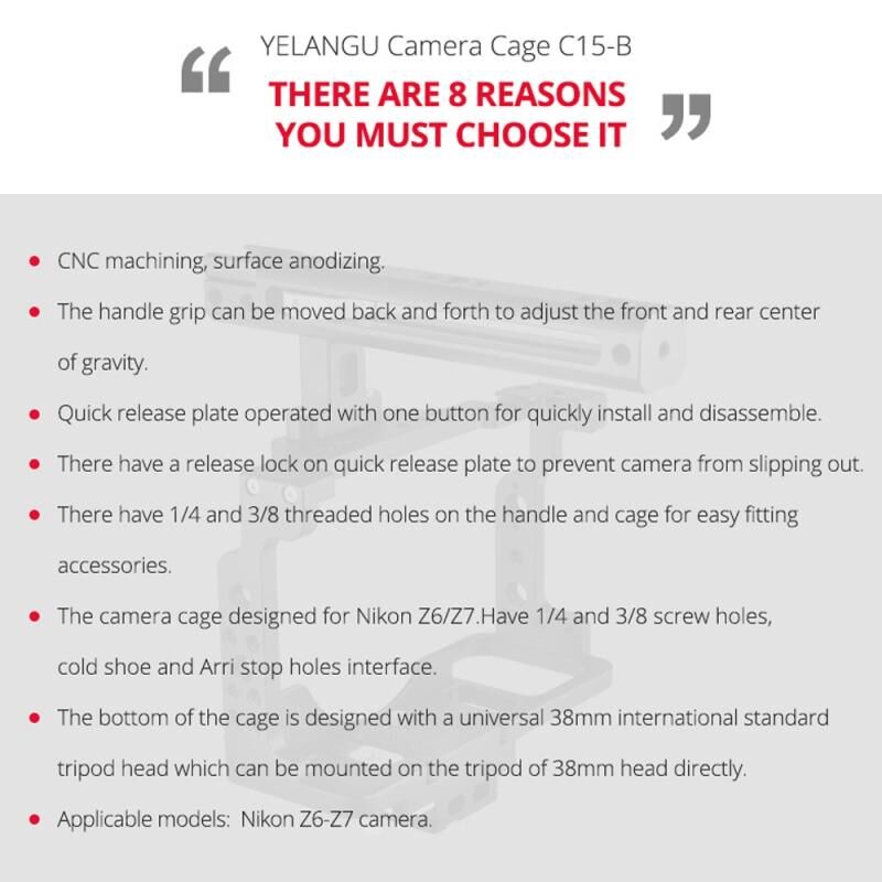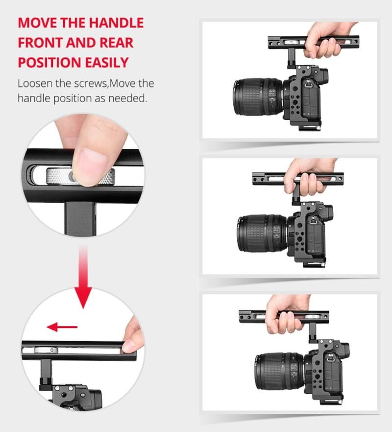 7. The camera cage designed for Nikon Z6/Z7. Have 1/4 and 3/8 screw holes, cold shoe and Arri stop holes interface.